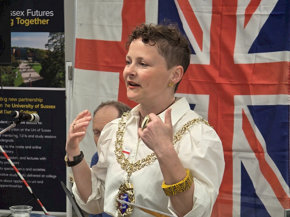 The Mayor of Hastings, Cllr Becca Horn addressed the audience, highlighting the importance of the English language in connecting people and communities.